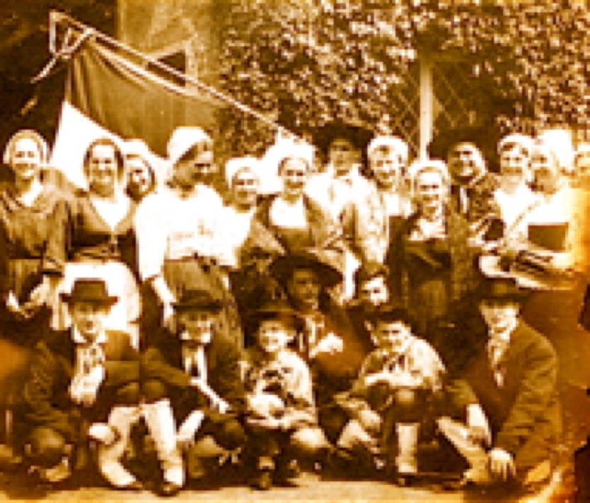 Sur cette photo datée de 1960, on reconnait Roger Pearron, fondateur des Thiaulins de Lignières, Michèle Fromenteau , fondatrice des Rencontres Internationales de Saint-Chartier, Annette Blanchard, ma soeur, devant la partie blanche du drapeau tricolore, et moi-même , agenouillé au centre, en bas de la photo.