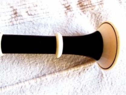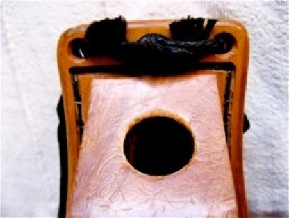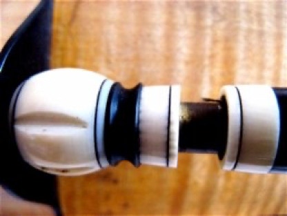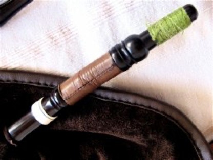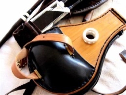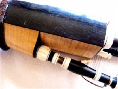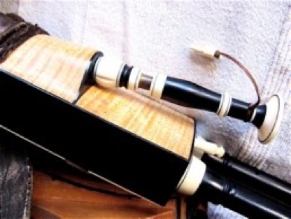 Bernard Blanc en a fabriqué le soufflet, inspiré d’un croisement entre le soufflet de la cabrette utilisée en Auvergne et de celui du uillean pipe irlandais pour la prise d’air.